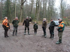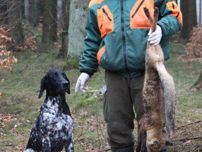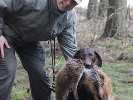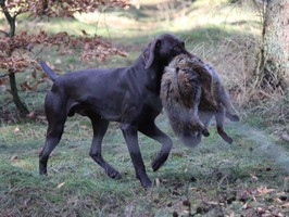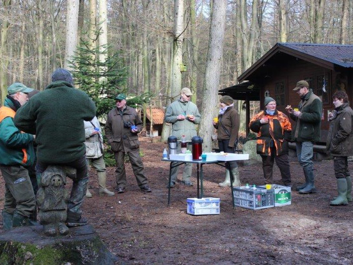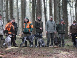 Nach Feststellung der Chip bzw.Tätonummern konnte die Prüfung beginnen. Fünf Hundeführer konnten ihren Hunden den Fuchs abnehmen, ein Hund brachte leider nicht den Fuchs zu seinem Führer und konnte so natürlich nicht bestehen. Nach Vergabe der Urkunden und Glückwünsche gab es leckere Brötchen und warme und kalte Getränke.