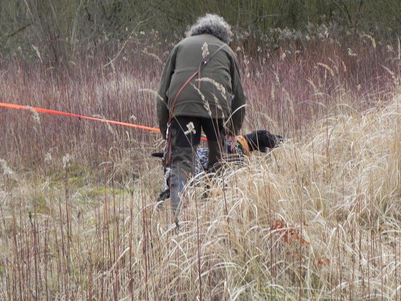 Es folgten für die Fortgeschrittenen Schleppen mit Enten und Kaninchen in unterschiedlichen Längen und für die noch nicht ganz so Fortgeschrittenen Apportübungen auf kurzen Distanzen.