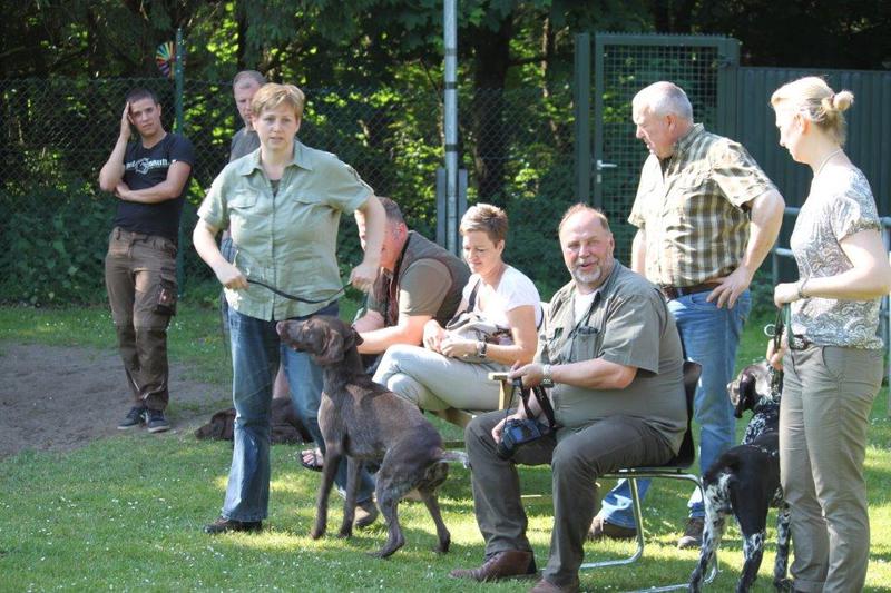 Im Anschluß stellte Hans-Heinrich Jaacks seinen E-Wurf ,,Deern vom ohlen Redder,, x ,,Sam vom Delme Horst,, nochmals als Zuchtgruppe vor, kommentierte kurz die sehr positiven Eigenschaften der Eltern und Nachkommen und bedankte sich bei den engagierten Führern für die Arbeit und Zeit, welche diese in die Ausbildung ihrer Hunde investieren.