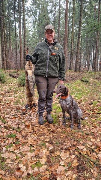 Der schnellste Hund des Tages war „ Cyra vom Wulfsmoor“ mit Führerin Inga Holst, die den Fuchs in 1 Minute und 30 Sekunden brachte.