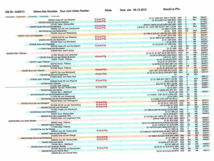 ZB-Nr. 0246/13, Brschl.m.Pln, gew. am 06.12.2012, Stockmaß 65 cm, D1, S1, IKP 1, VGP 321Pkt/ÜF, BTR, VBR, SI, HN, HD A2, Formwert SG