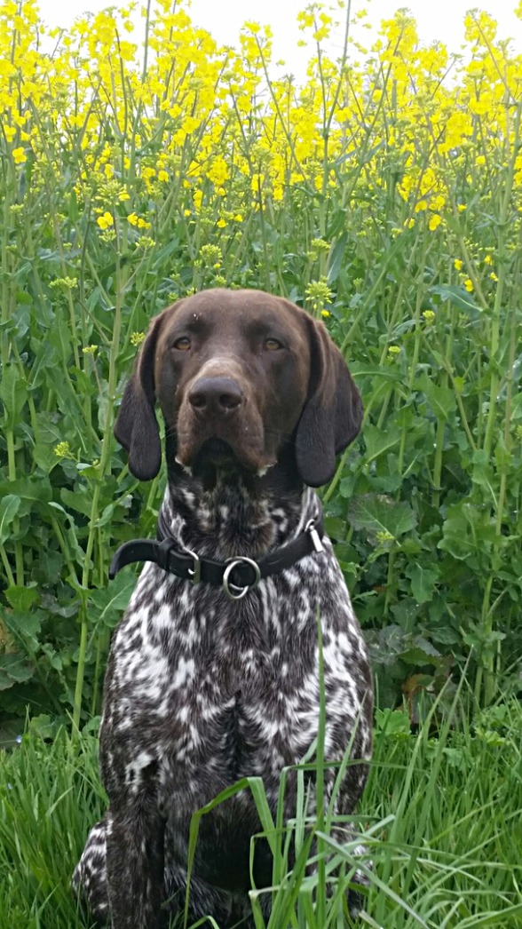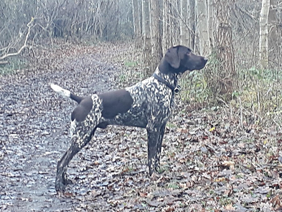 Emil ist ein großer, selbstsicherer, substanzvoller Rüde mit ausgeprägtem, starkem Rüdenkopf, außergewöhnlicher Muskulatur, tiefer starker Brust, fließenden Bewegungen und schönem Pigment. Seine jagdlichen Prüfungen hat er alle in den Jahren 2016/17 getätigt und bestanden. Er ist aggressionsfrei, offen und freundlich gegenüber Kindern und Erwachsenen. Emil hat und bietet einen breiten Blutanschluss mit den Blutlinien an u.a. Pöttmes, Dinkelhof und vom Delme Horst (Vater und optisches Abbild : Sam vom Delme Horst). Emil ist außerdem zusammen mit seinem Führer Mitglied im Klub Kurzhaar Nordmark e.V. Die Feldarbeit absolviert er weiträumig, zügig, planmäßig und ausdauernd in Abstimmung mit seinem Führer (4h Suche Solms Prüfung 2016). Auch im Wald arbeitet er passioniert mit Übersicht und führerbezogen. Bei der Wasserarbeit überzeugt Emil mit seiner Passion, seinem Willen, seiner Härte, seiner Ausdauer sowie mit absolutem Finderwillen (Wasser-Pokalsieger Hegering Joldelund-Viöl 2017). Aus seinem Wurf haben mit ihm insgesamt 5 Hunde erfolgreich die VGP bestanden im Jahr 2017. Seine weiteren Geschwister zeigen sich im Jagdeinsatz als sehr führige Jagdhunde mit jagdlicher Ausbildung. Im Einsatz auf Niederwild, Schwarzwild und auch auf der Nachsuche arbeitet er mit Jagdverstand, Härte und Ruhe. |