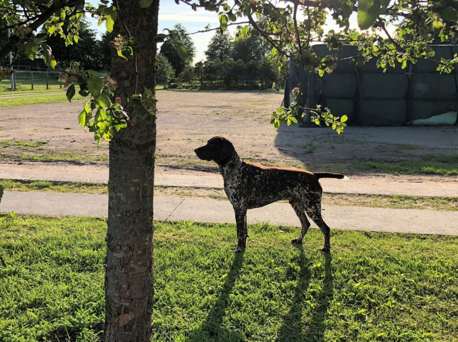 Gauner ist ein leistungsstarker Rüde des Mittelschlages, der mit seinem ausgeglichenen und freundlichen Wesen überzeugt. Zu Hause ist er auf einem landwirtschaftlichen Betrieb im Herzen Holsteins, wo er sowohl Zwinger, als auch Haus mit Familienanschluss gewohnt ist.